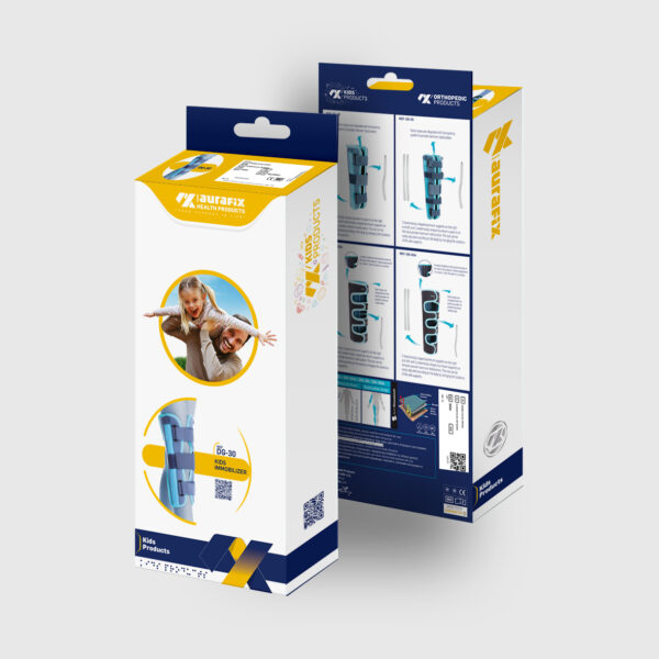 Çocuk anatomisine göre tasarlanan iç yüzeyi havlu olan süngerli kumaştan (Auraraised Cloth) üretilen immobilizerdır. Posterior,medial ve lateralde stabilizasyon sağlayan portatif aluminyum destekler; fleksiyon ve ekstansiyon hareketlerini sınırlandırır.